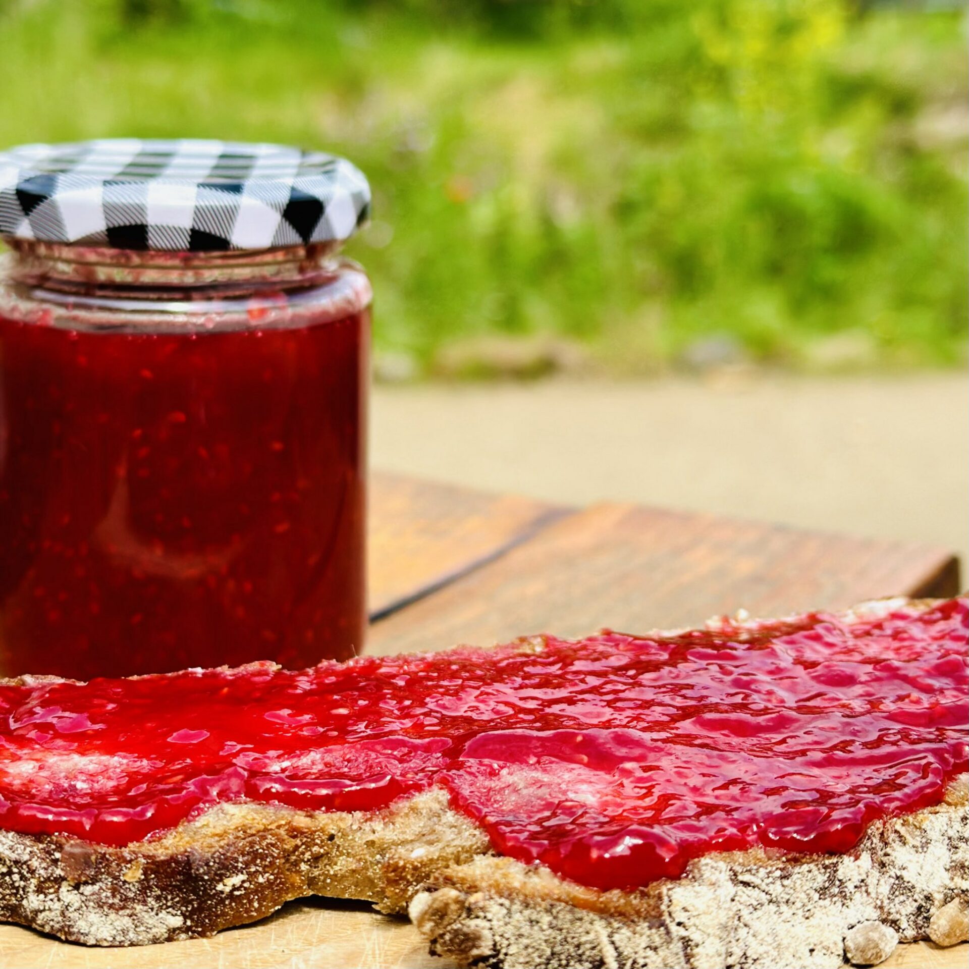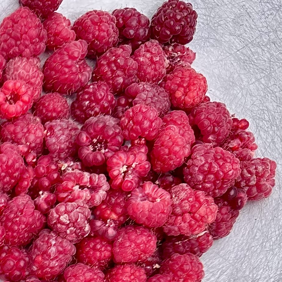 Himbeeren sammeln und abwiegen. Je nach Geschmack Rosenwasser dazugeben.
